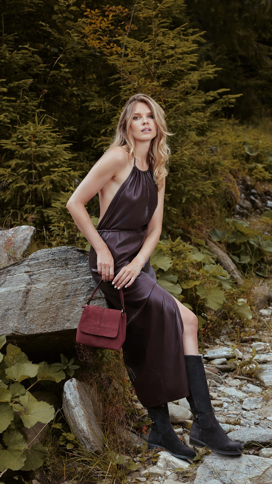 Women Suede Leather Handbag BLUMA 01 CROSTA FANGO